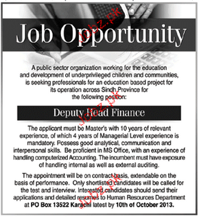 Apply as per details in job advertisement. Login to view further details of how to apply via https://www.jobz.pk online.