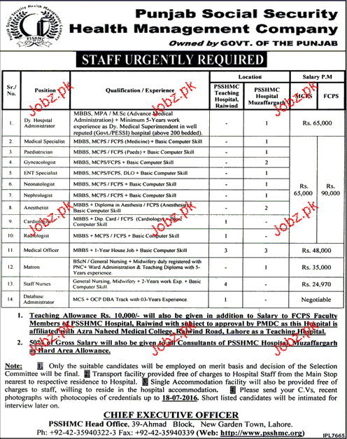 Apply as per details in job advertisement. Login to view further details of how to apply via https://www.jobz.pk online.