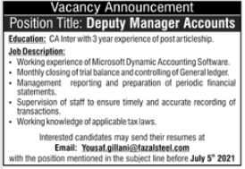Deputy Manager Accounts Jobs 2021 In Rawalpindi