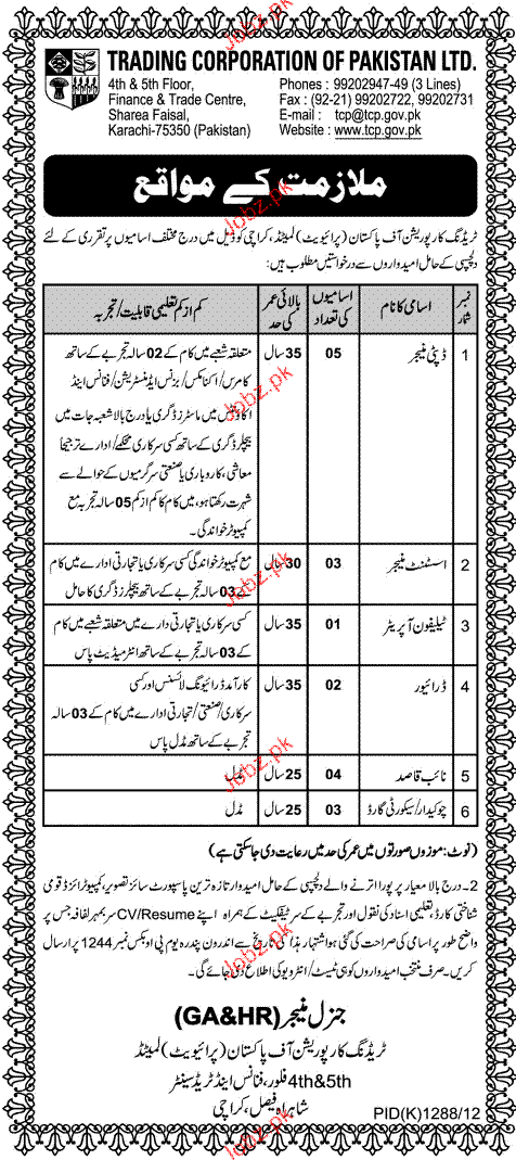 Apply as per details in job advertisement. Login to view further details of how to apply via https://www.jobz.pk online.
