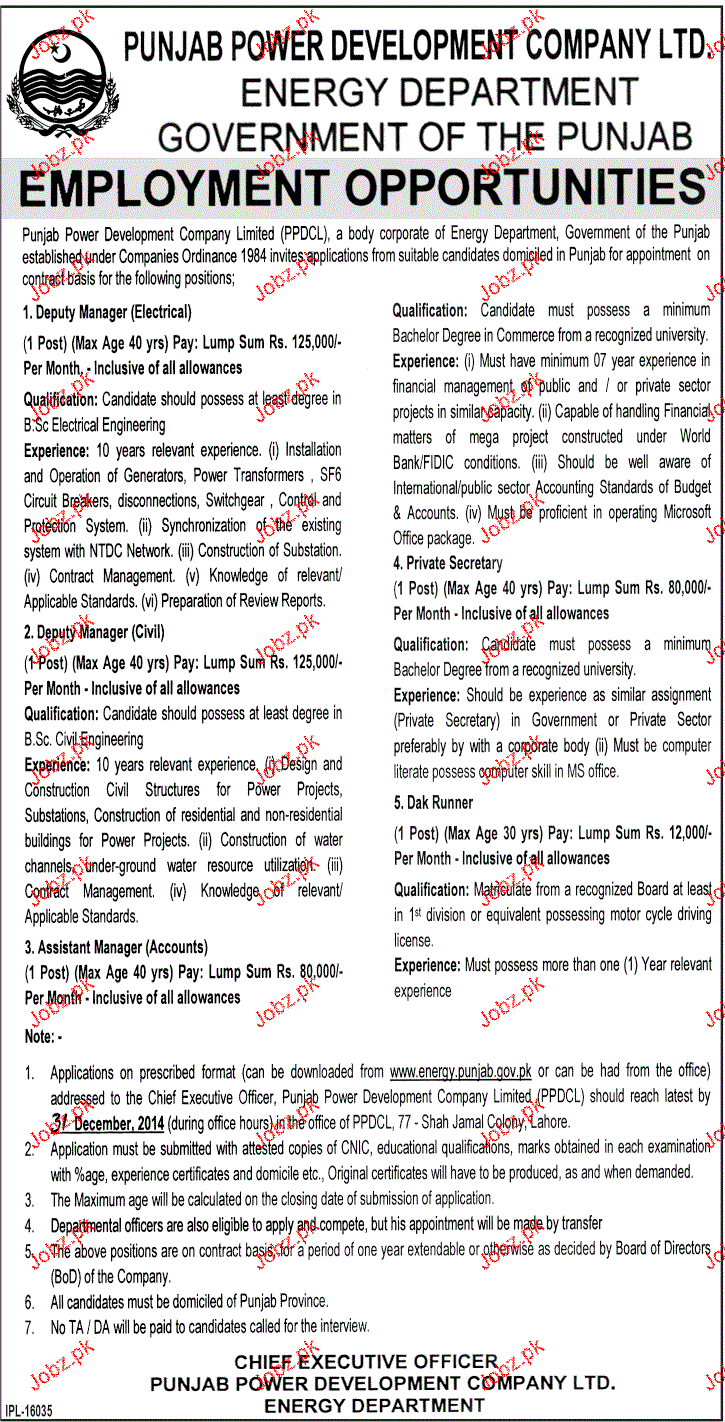 Deputy Manager Electrical, Deputy Manager Civil Wanted