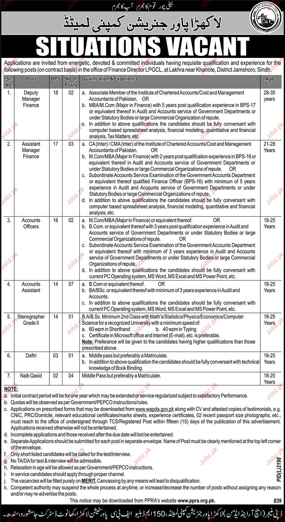 Apply as per details in job advertisement. Login to view further details of how to apply via https://www.jobz.pk online.