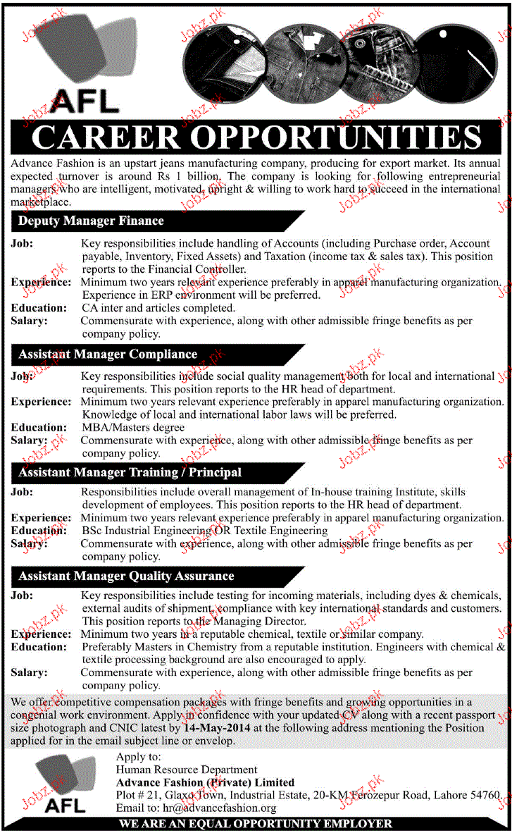 Deputy Manager Finance, Assistant Manager Training Wanted