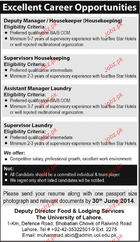Apply as per details in job advertisement. Login to view further details of how to apply via https://www.jobz.pk online.
