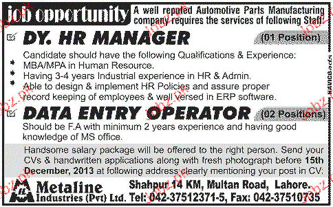Apply as per details in job advertisement. Login to view further details of how to apply via https://www.jobz.pk online.