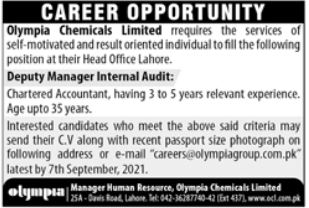 Latest Olympia Chemicals Limited Accounting Posts Lahore 2025
