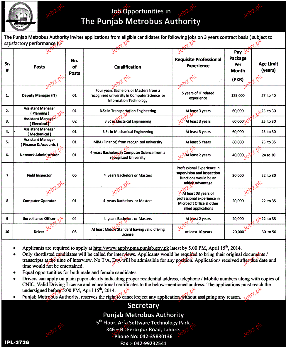 Apply as per details in job advertisement. Login to view further details of how to apply via https://www.jobz.pk online.