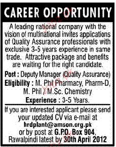 Apply as per details in job advertisement. Login to view further details of how to apply via https://www.jobz.pk online.