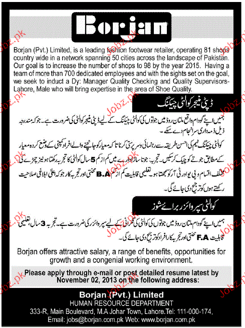 Apply as per details in job advertisement. Login to view further details of how to apply via https://www.jobz.pk online.