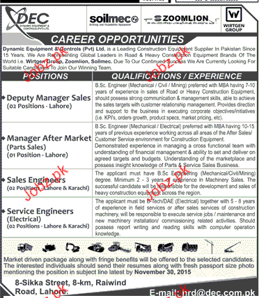 Deputy Manager Sales, Sales Engineers Job Opportunity