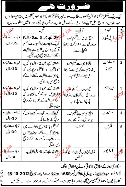 Apply as per details in job advertisement. Login to view further details of how to apply via https://www.jobz.pk online.