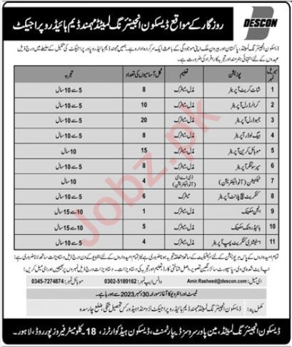 Vacancies in Descon Engineering Limited Advertisement December 2023