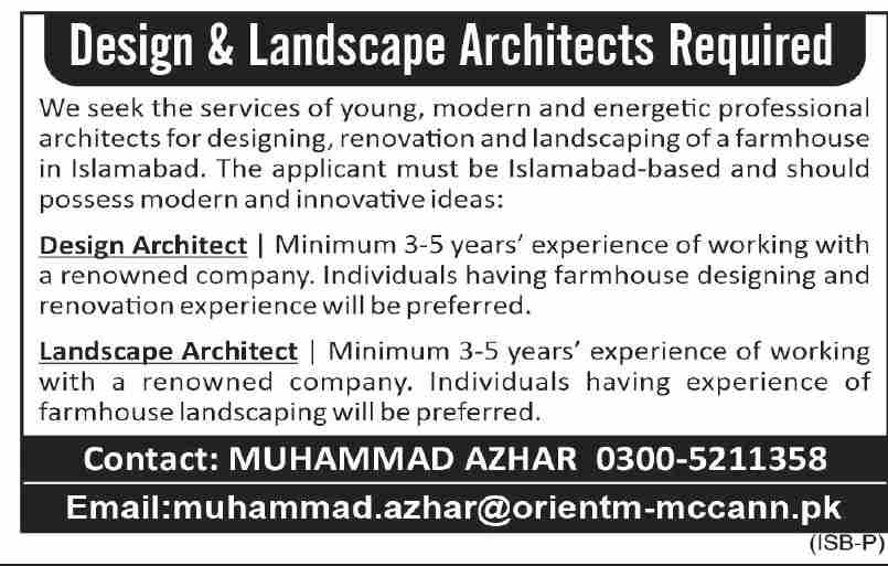 Design & Landscape Architect Jobs In Orient MCCANN Pakistan