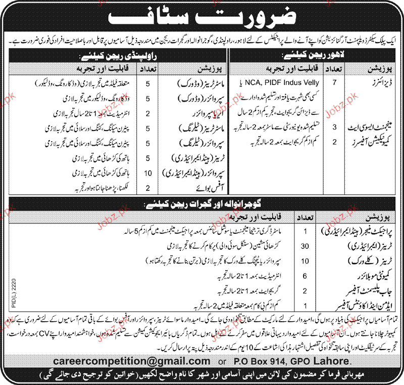 Apply as per details in job advertisement. Login to view further details of how to apply via https://www.jobz.pk online.