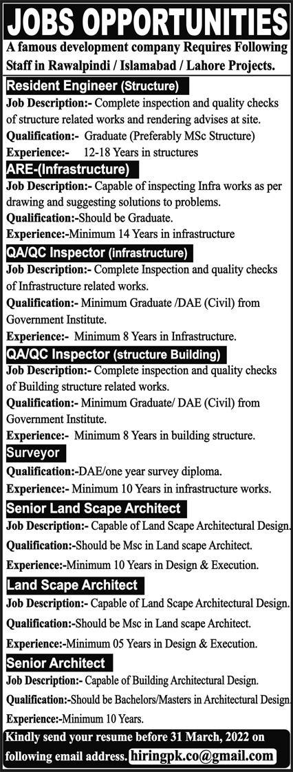 Development Organization is looking for candidates for following posts as per job advertisement published in daily Express Newspaper of March 13, 2022 for location Islamabad, islamabad Islamabad Pakistan: