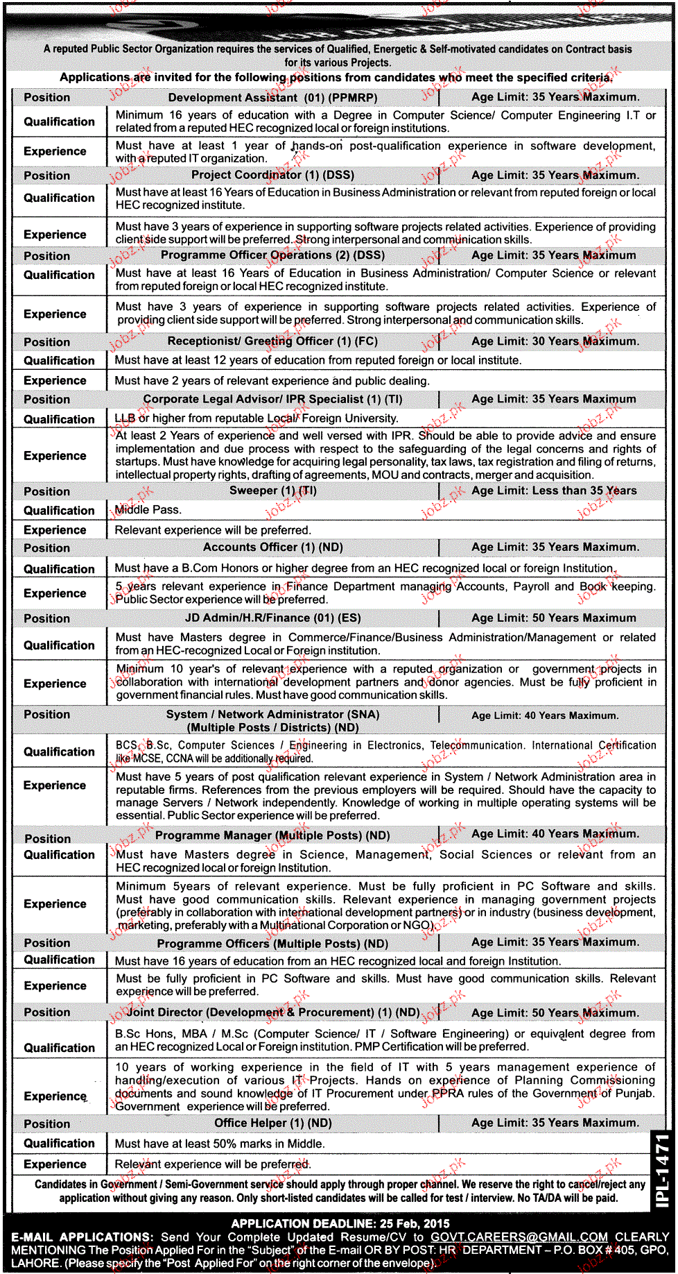 Apply as per details in job advertisement. Login to view further details of how to apply via https://www.jobz.pk online.