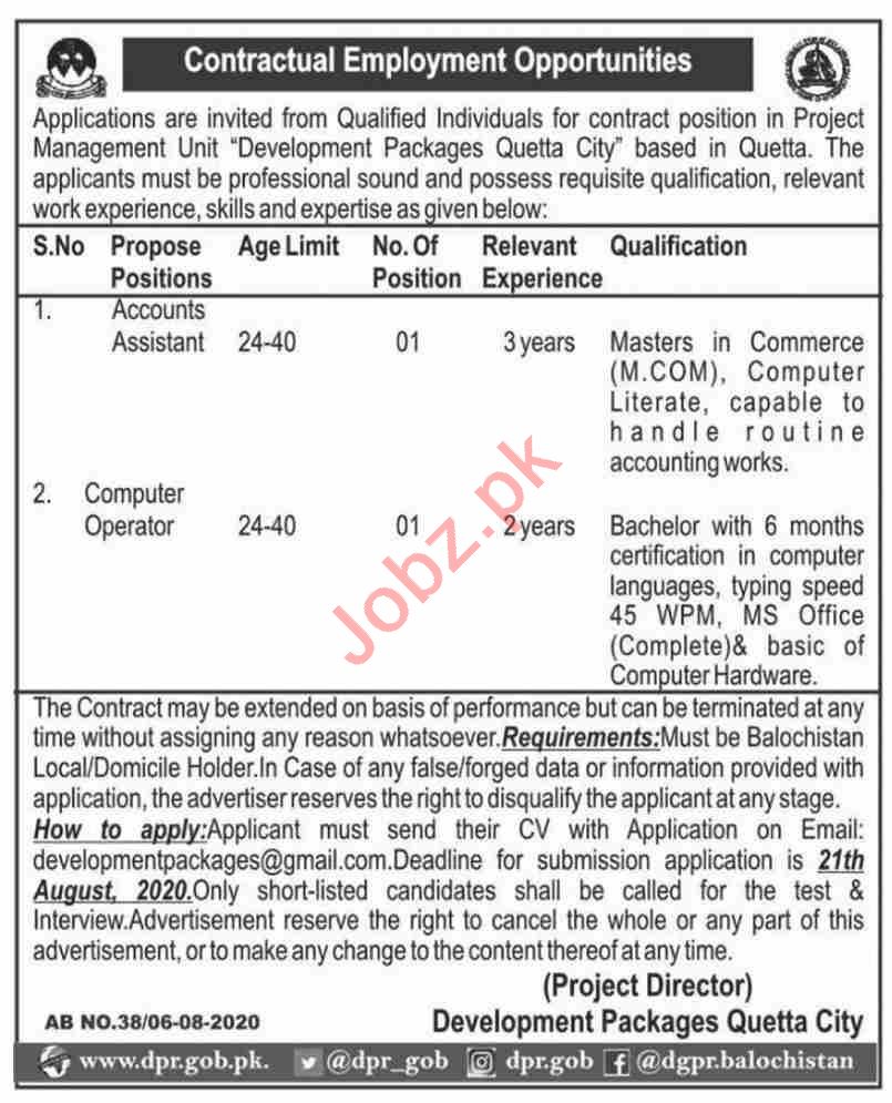 Development Packages Quetta City Jobs 2020 Accounts Asst
