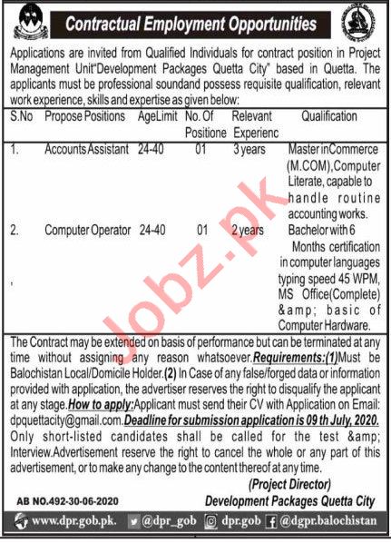 Development Packages Quetta City Jobs 2020 For Asst Accounts