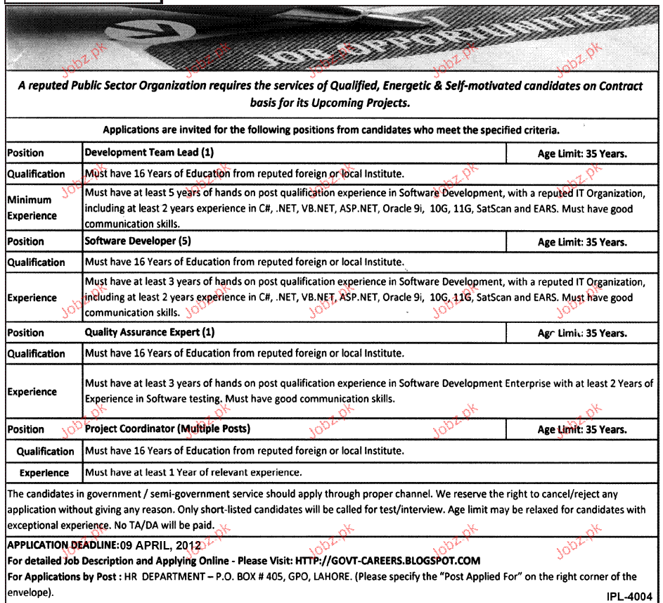 Apply as per details in job advertisement. Login to view further details of how to apply via https://www.jobz.pk online.