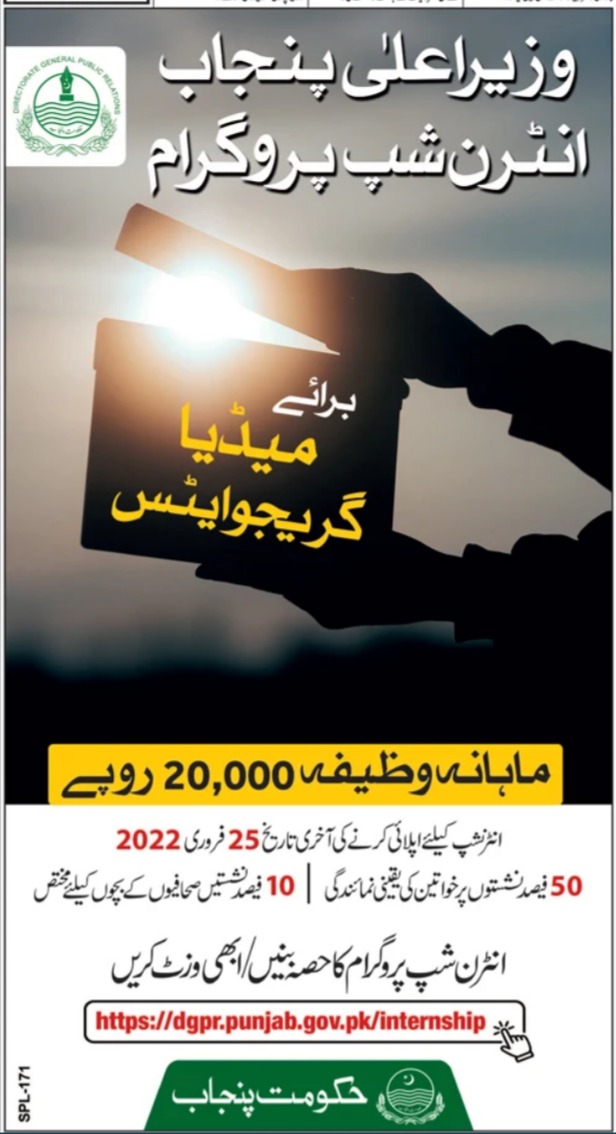 Directorate General Public Relations jobs advertisement dated about 12 February 2022 in daily Jang Newspaper invites application for the vacant post of Internship and Media Graduate Internee in Islamabad Pakistan. Persons with Bachelor etc. education can apply.