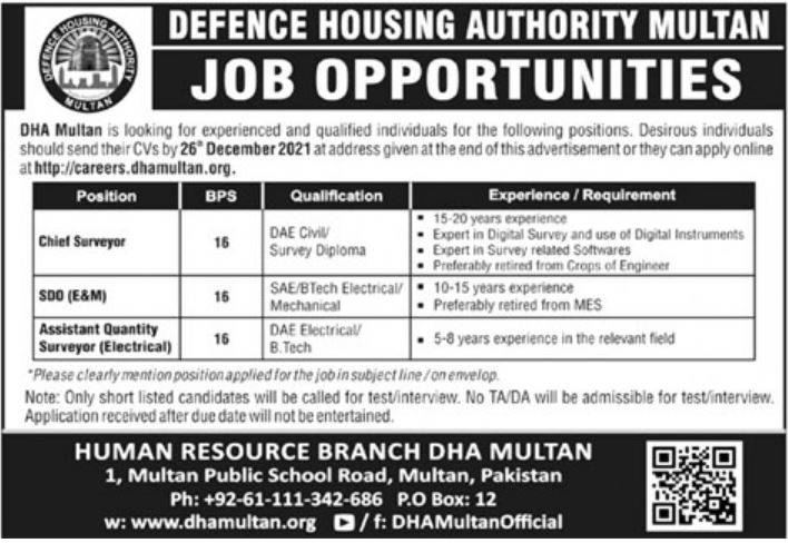 Vacancies in Defence Housing Authority DHA Advertisement December 2021