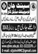 ST John Homeopathic Medical College Diploma in Homeopathic Medicine and Surgery DHMS admissions 2024 has been started. Eligible students who qualify as per admission criteria in ST John Homeopathic Medical College Karachi Sindh Pakistan can apply in Medical Diploma for academic year 2024. Students for admissions in Diploma can apply for online or campus classes as per Private institute criteria till admission closing date August 26, 2024. Read newspaper ad for exact details.