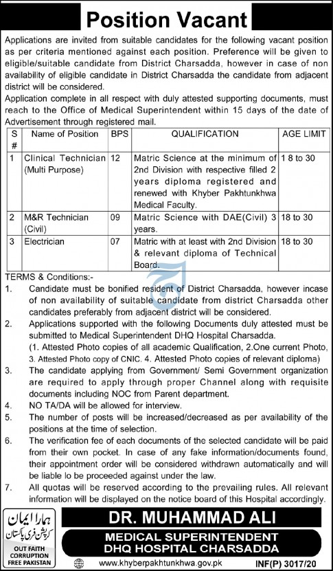 DHQ Hospital Charsadda Jobs 2020