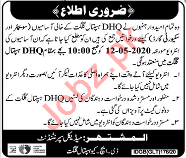 DHQ Hospital Gilgit Jobs Interview 2020 Sweeper & Guard