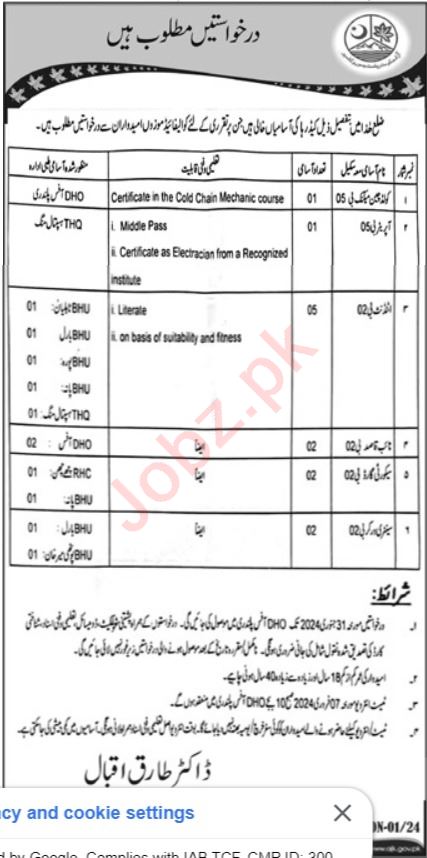 DHQ Hospital invites applications for job positions advertised in daily Khabrain dated 14 January 2024 for following vacancies in Plandri, plandri AJK Pakistan.