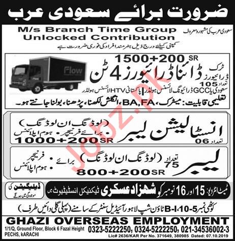 Vacancies in Ghazi Overseas Company Advertisement November 2019
