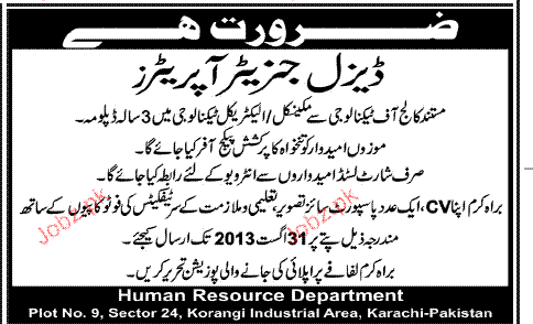 Apply as per details in job advertisement. Login to view further details of how to apply via https://www.jobz.pk online.