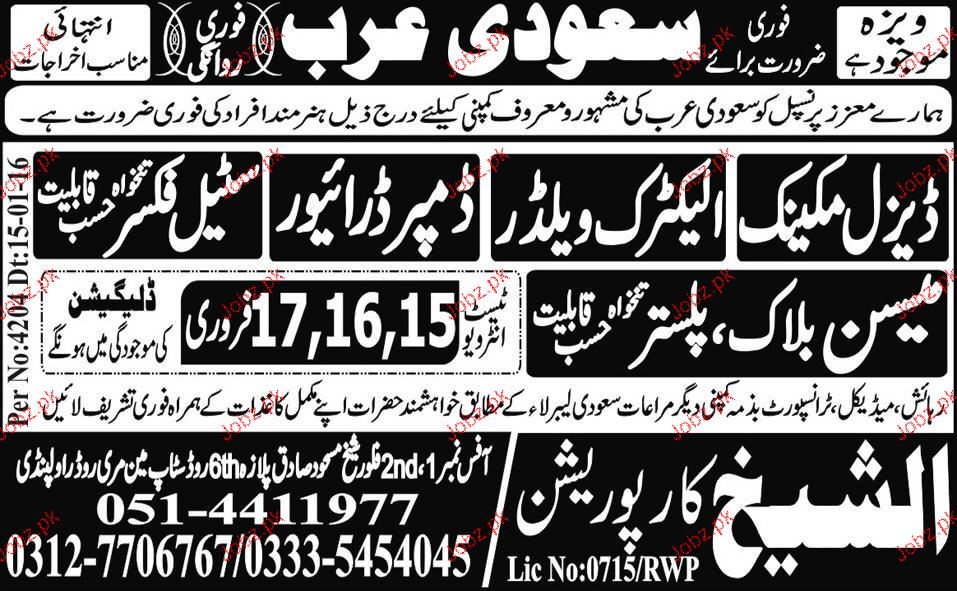 Diesel Mechanics, Electric Welders, Mason Job Opportunity