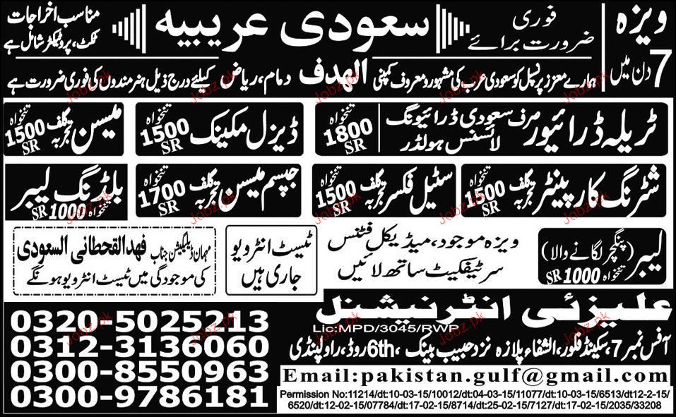 Diesel Mechanics, Mason, Tralla Drivers Job Opportunity