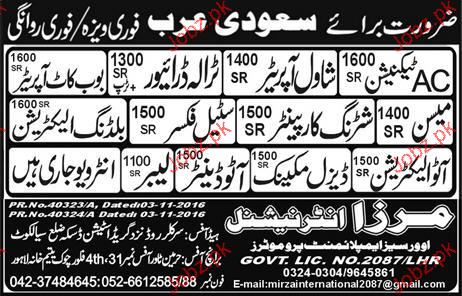 Diesel Mechanics, Shawal Operators, House Maid Wanted