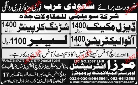 Diesel Mechanics, Shuttering Carpenters Job Opportunity