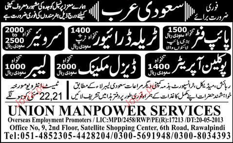 Diesel Mechanics, Surveyors, Labors Job Opportunity