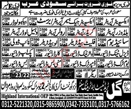Vacant posts including rigger, roller operator, grader operator, bus driver, pipe dolly, side boom, car driver, fleet bed trailer, mini bus driver, dumper truck driver and bulldozer operator are announced in Gull Trade Test & Technical Center Makkah, makkah Saudi Arabia as per 21 July 2024 advertisement in daily Express Newspaper. Candidates with Primary, Middle and Matric etc. educational background will be preferred.