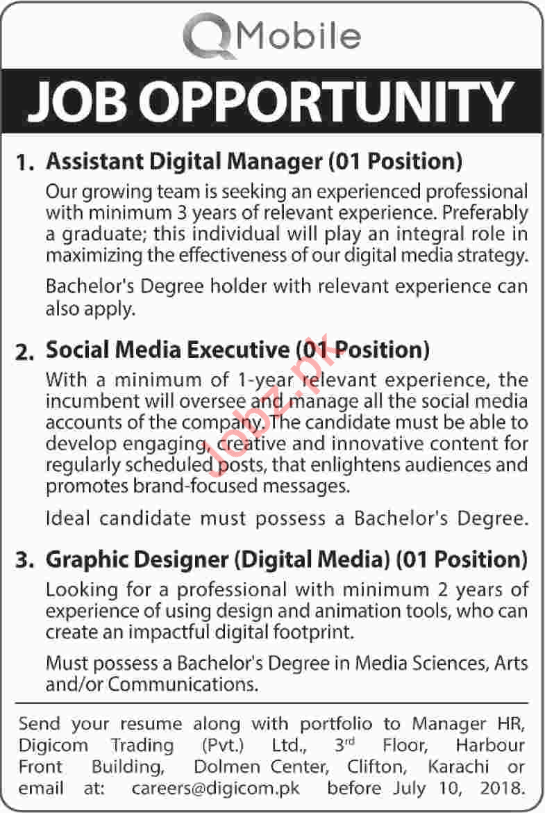 DigiCom Technologies Q Mobile Lahore Jobs 2018