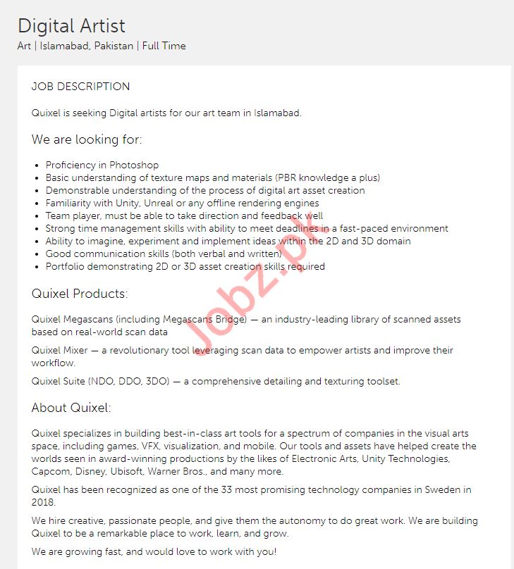 Digital Artist Jobs In Quixel
