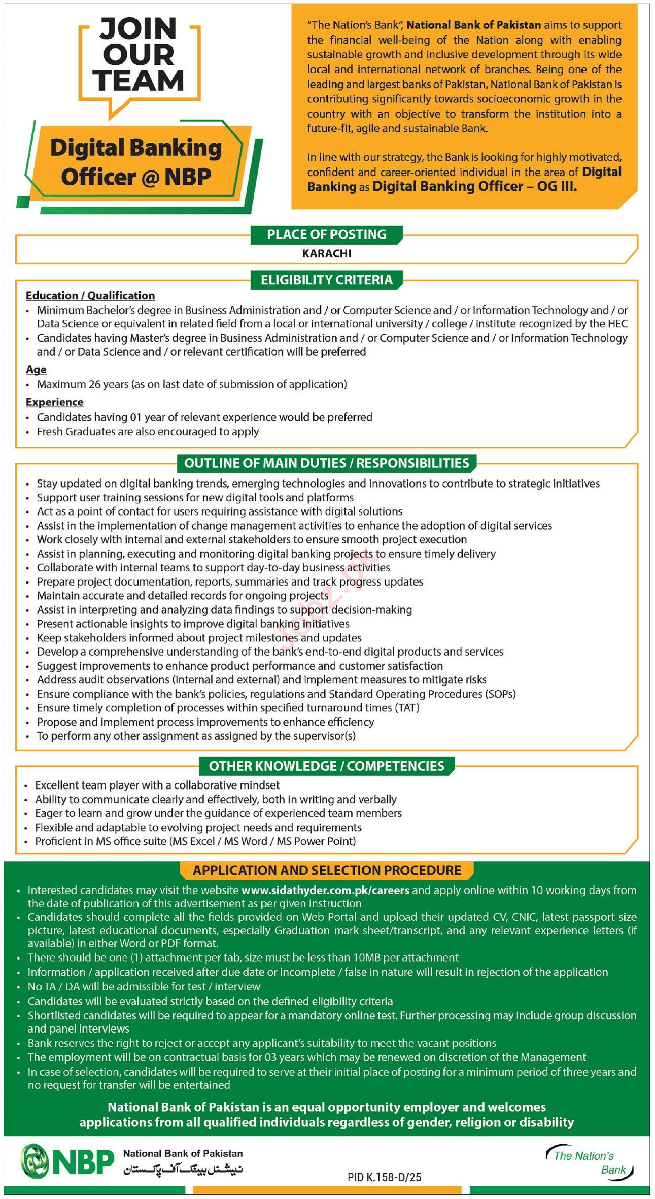 Digital Banking Officer Jobs At National Bank Of Pakistan