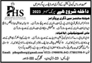 Prime Institute of Heath Sciences admissions 2023 for Doctor of Physical Therapy DPT, BS Human Nutrition and Dietetics, BS Clinical Psychology, BS Mass Communication, Basic Computer Skills, Diploma in Communication Planning and Public Relations has been announced. Prime Institute of Heath Sciences Lahore Punjab Pakistan welcomes students to apply for admissions in academic year 2023 in Medical University. Eligible candidates for admissions in Diploma, BS and DPT can apply as per Private institute criteria and before closing date 12 April 2023 after reading advertisement online. Read newspaper ad for exact details.