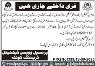 Technical Educational & Vocational Training Authority AJKTEVTA Diploma Courses admissions 2025 has been announced. Technical Educational & Vocational Training Authority AJKTEVTA Quetta Balochistan Pakistan welcomes students to apply for admissions in academic year 2025 in Science College. Eligible candidates for admissions in can apply as per Government institute criteria and before closing date after reading advertisement online. Read newspaper ad for exact details.