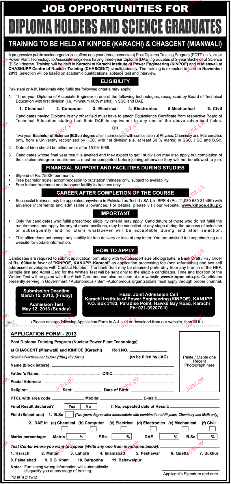 Apply as per details in job advertisement. Login to view further details of how to apply via https://www.jobz.pk online.