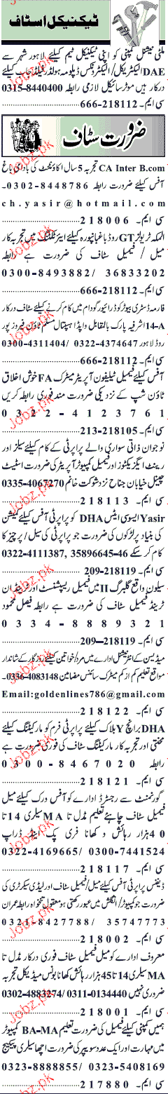 Todays New Jobs in Lahore
