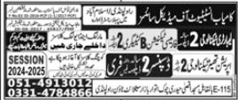 Kamyab Institute of Medical Sciences has announced admissions 2024 for Laboratory Technology, Pharmacy Technician, Operation Theatre Technology, Dispenser. Students can enroll for admissions in Kamyab Institute of Medical Sciences Rawalpindi Punjab Pakistan for academic year 2024 to continue campus based or online education in Medical College. Students for admissions in Diploma can apply for online or campus classes as per Private institute criteria till admission closing date April 30, 2024. Read newspaper ad for exact details.