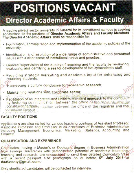 Director Academic Affairs & Faculty Job Opportunity