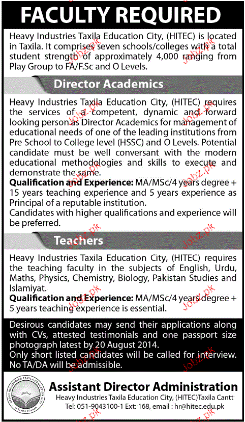 Apply as per details in job advertisement. Login to view further details of how to apply via https://www.jobz.pk online.