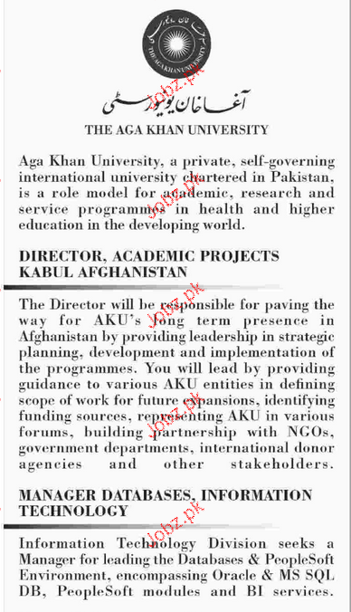Director Academics, Manager Database Job Opportunity