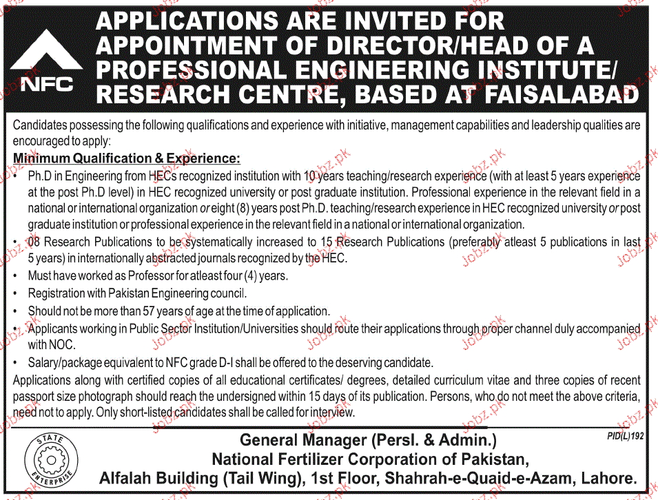 Apply as per details in job advertisement. Login to view further details of how to apply via https://www.jobz.pk online.