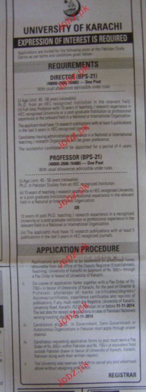 Director And Professors Job In University Of Karachi
